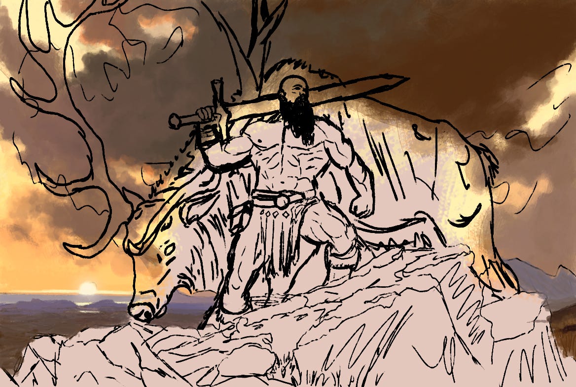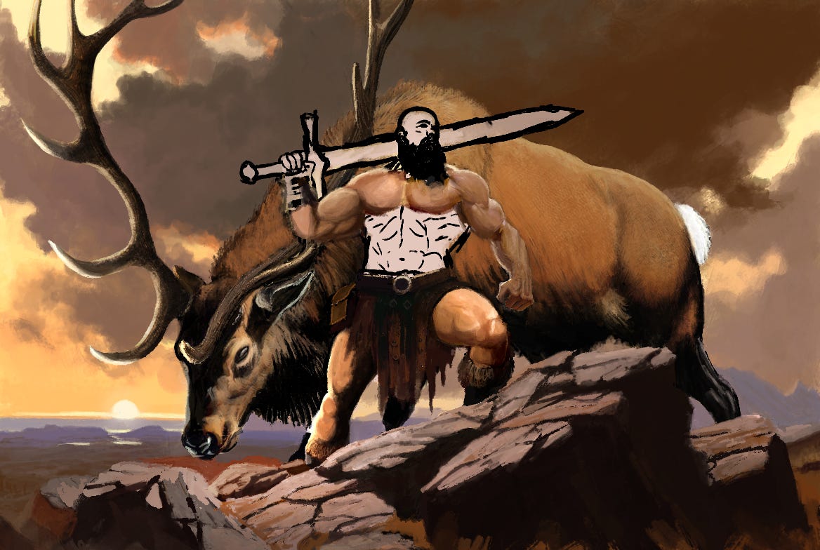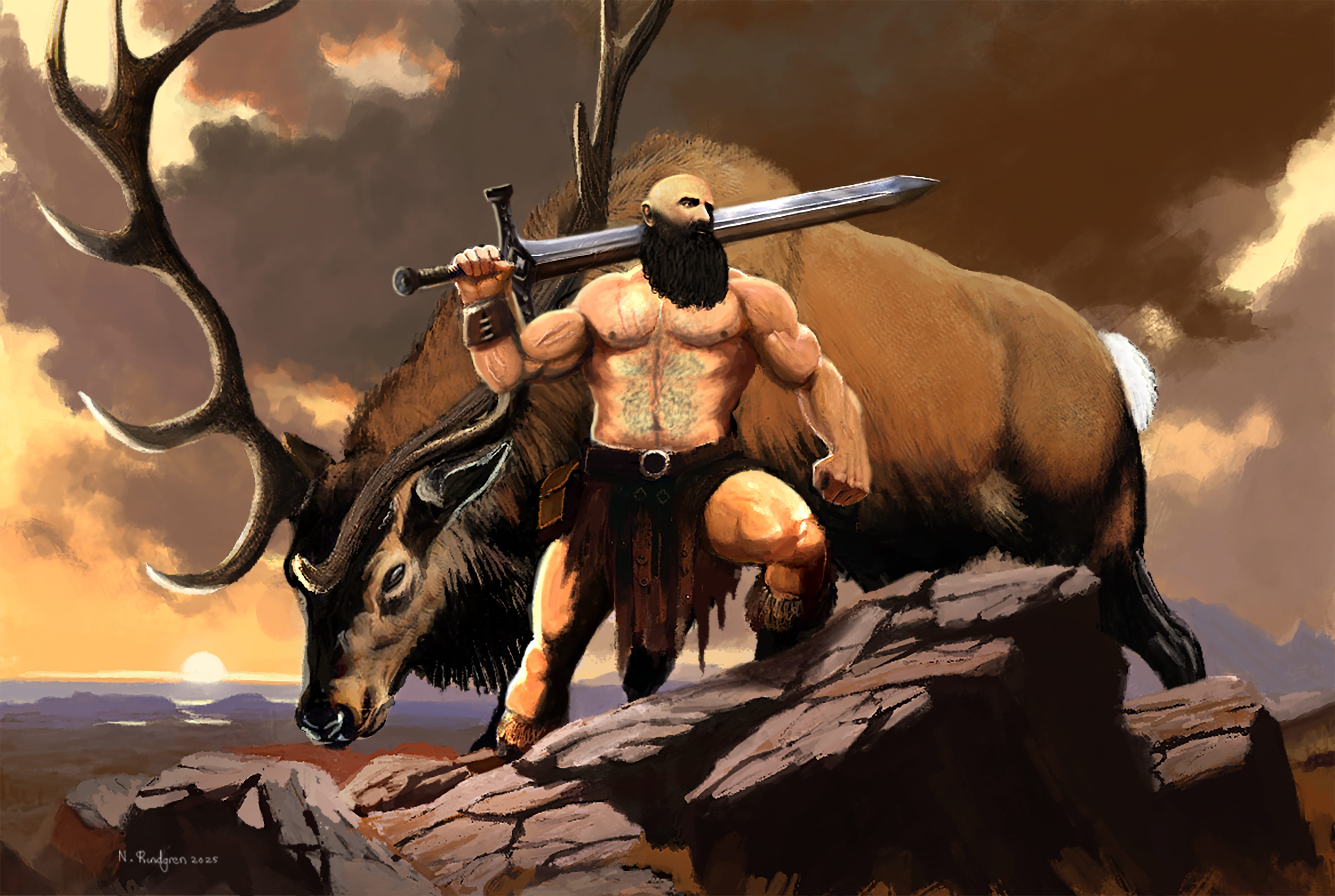 I painted this for a dear friend of mine; it’s his birthday present. He is proud of of German heritage, as well as his love of the whole “barbarian” persona & attributes thereof, thus I combined the two to create the ultimate portrait.