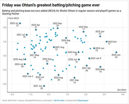 And here’s one more way of looking at it, just pure RE24 as both a batter and a pitcher: