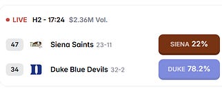 Still far from flipping to Siena being favored… but a 22% chance for a 16 to beat a 1 is insane unto itself.
