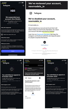 On Monday evening, an hour before the Exocapitalism event we were co-hosting in Berlin, New Models’ IG account was suspended. By midnight, it was “permanently disabled.” We still have no idea why…