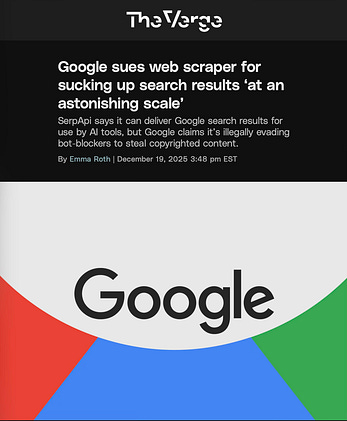 ““SerpApi says it can deliver Google search results for use by AI tools, but Google claims it’s illegally evading bot-blockers to steal copyrighted content. ”