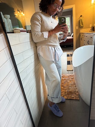 It’s still freezing outside and I’m still wearing knitwear, but this outfit feels like spring personified and I’m here for it 💙🌷🩵