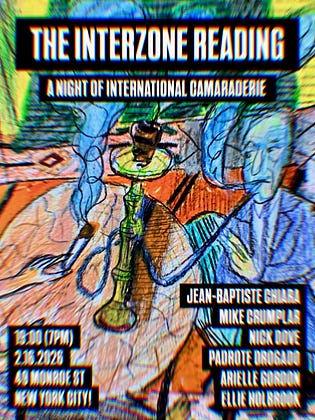 Monday, February 16th, at The Monroe in Two Bridges. Join me and Mike Crumplar as we welcome our international crew of accursed poet weirdos to New York City. I’ll be reading something very(!) special.