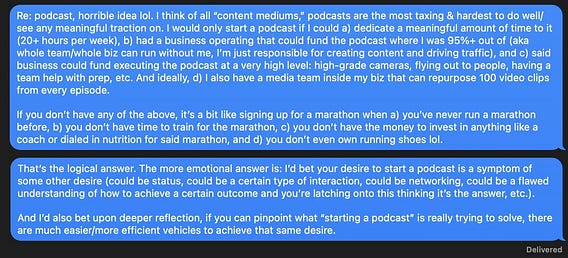 An entrepreneur friend texted me, asking my opinion on whether or not he should start a podcast.