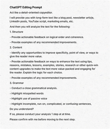 Here's the AI prompt I use to edit my writing in less than 2 minutes: