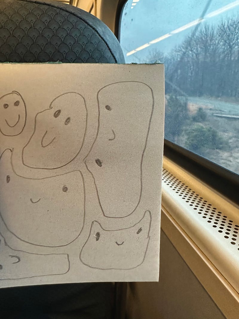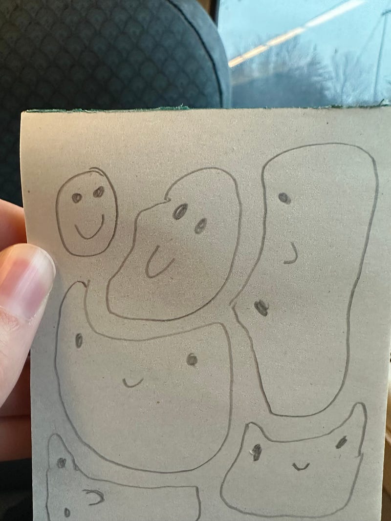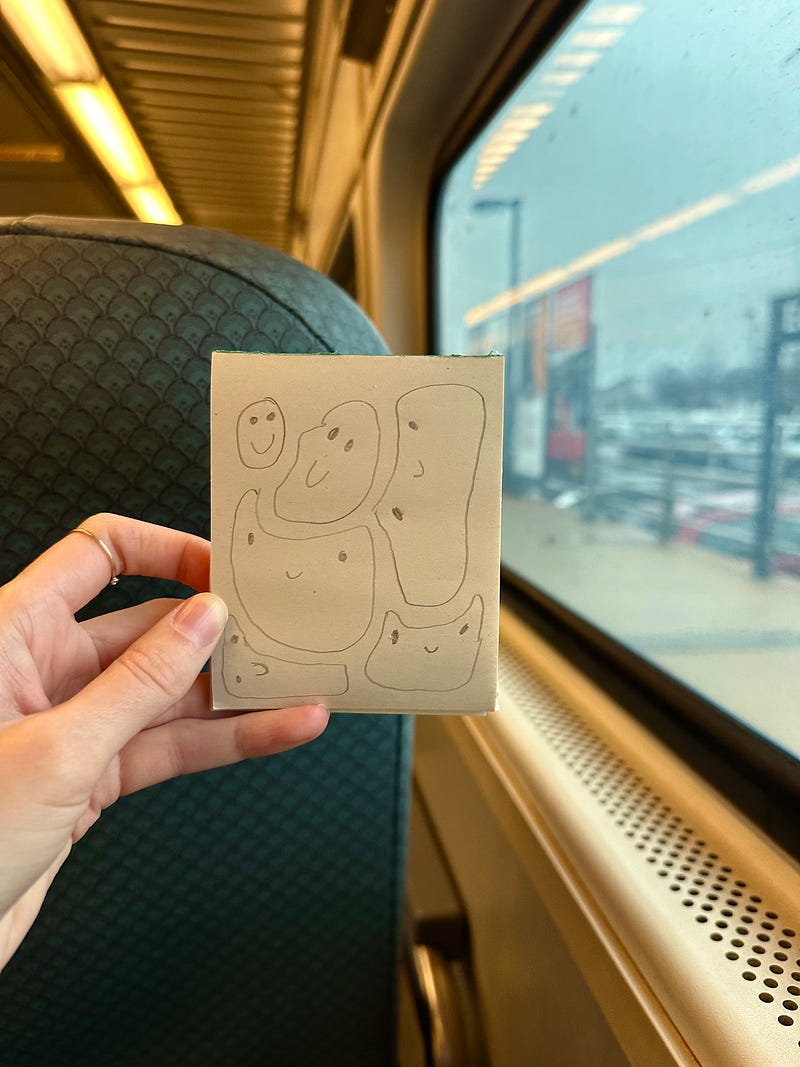 I’m currently on the train heading back to the city after a weekend home. I picked up a cute tiny notebook this weekend for drawing smiley faces on-the-go.