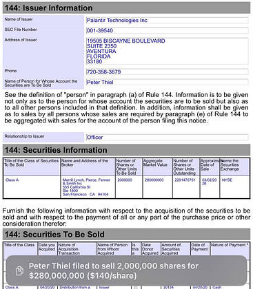 🚨 PETER THIEL JUST DUMPED 2 MILLION PALANTIR SHARES.
