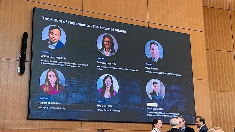 A panel convened leaders from J.P. Morgan, Biolocity, Barnes & Thornburg, and the Georgia Research Alliance to answer one question: how does Atlanta build a biotech ecosystem that competes with Boston and the Bay Area?