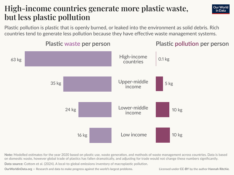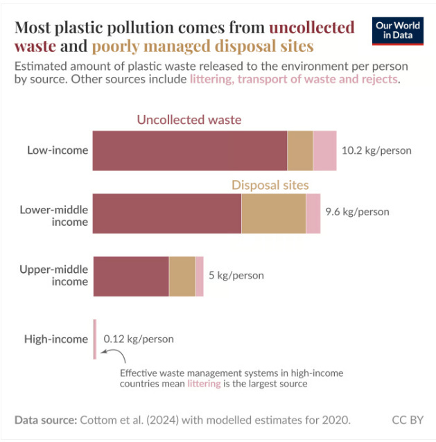If low and middle-income countries managed plastic waste the way rich countries do, plastic pollution could drop by 98%.