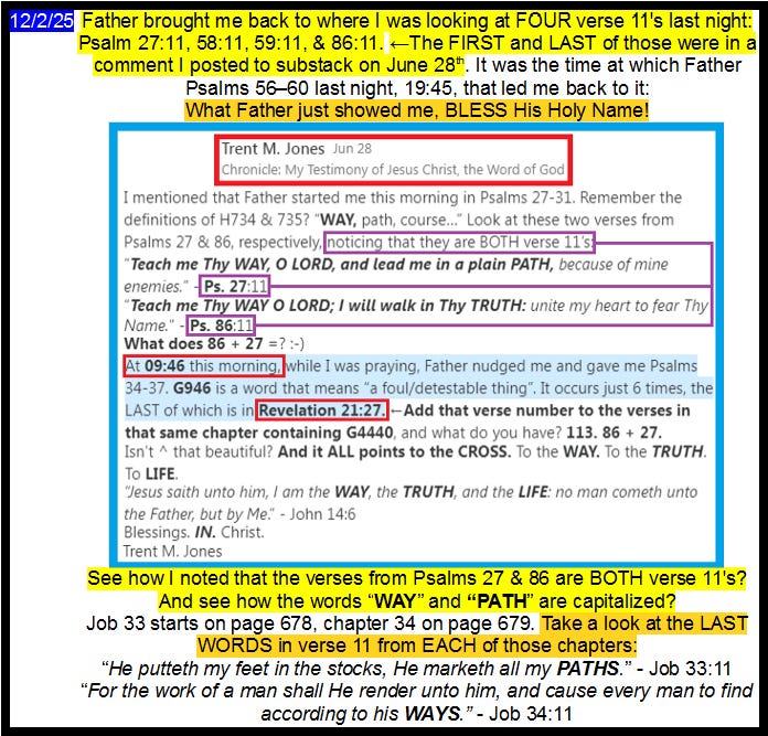 158 days ago, on 6/28/25, Father revealed for me a picture of the CROSS in Psalm 113, and it started with two words which BOTH mean “PATH, road, WAY (course) of life”, H734 & H735.
