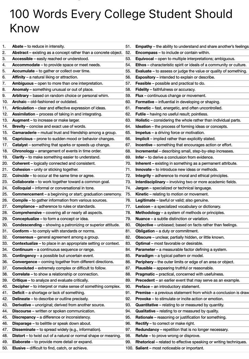100 Words Every College Student Should