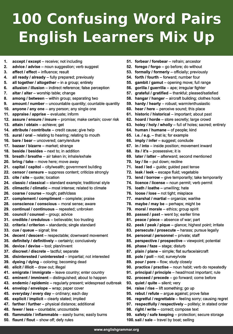 100 CONFUSING WORD PAIRS ENGLISH LEARNERS MIX UP