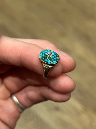 Turquoise and yellow gold - a rare but very tasteful combination.