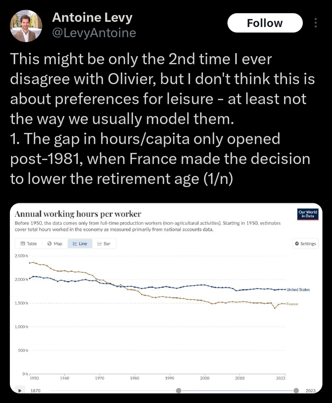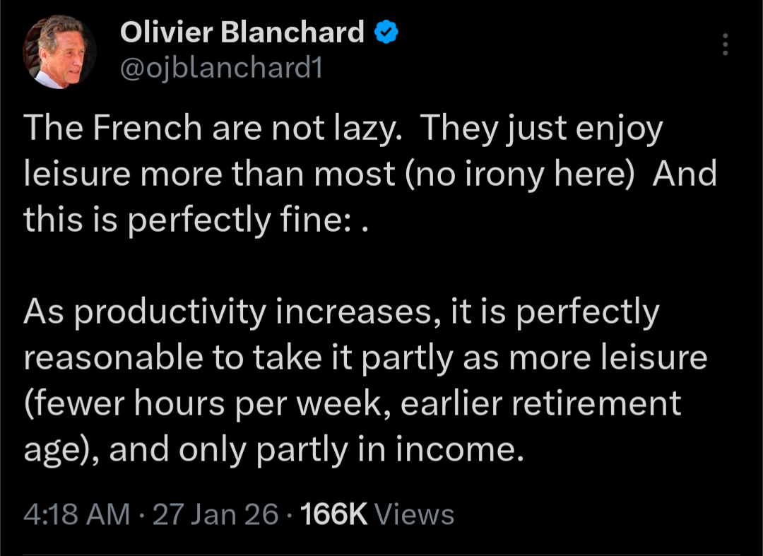 Interesting debate - do the French prefer more leisure or are they prevented from working more by laws/regulations.