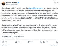 Ishaan's WorldView was the rarest thing in MSM: a column that consistently illuminates the perspectives of people outside of America.
