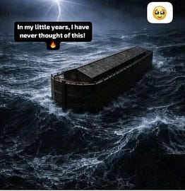 Noah was building a massive vessel to survive a global storm, but he had zero control over it, or over where it went.