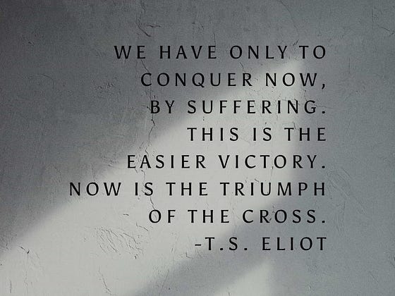On my mind today. And heart. As I conquer through suffering. Which is always the easier victory. A victory which is not our own because it belongs to Christ. The triumph of the cross.