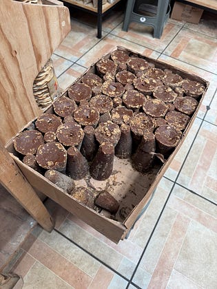 Piloncillo, Mexican raw sugar, for sale at our corner market.