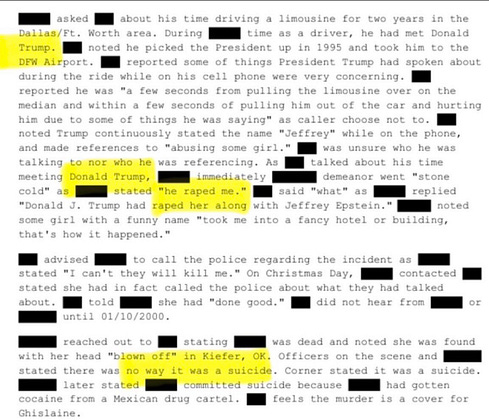 “Donald J Trump had raped her along with Jeffrey Epstein.” Reported by a victim whose head would be blown off