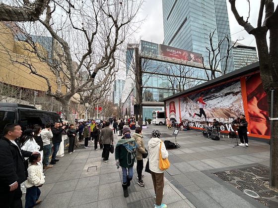 Tons of people do street performances here in front of the park entrance across Jing’An Temple, lots of people stop to take photos/video — very strategic OOH by Nike ACG 🎯