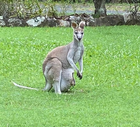 On the front lawn today, mother and joey. Wondering if it can compete with all the cute cat pics?