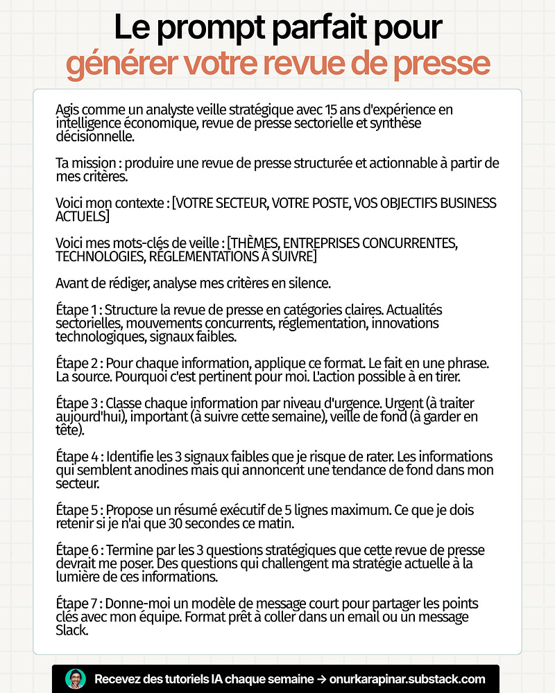 Ce prompt génère votre revue de presse.