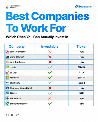 Companies like Nvidia, Microsoft, Google, Bain, and In-N-Out frequently appear on these lists.