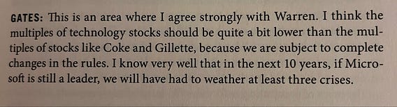 Bill Gates once argued that tech stocks should trade at lower multiples than consumer staples, due to disruption risk.