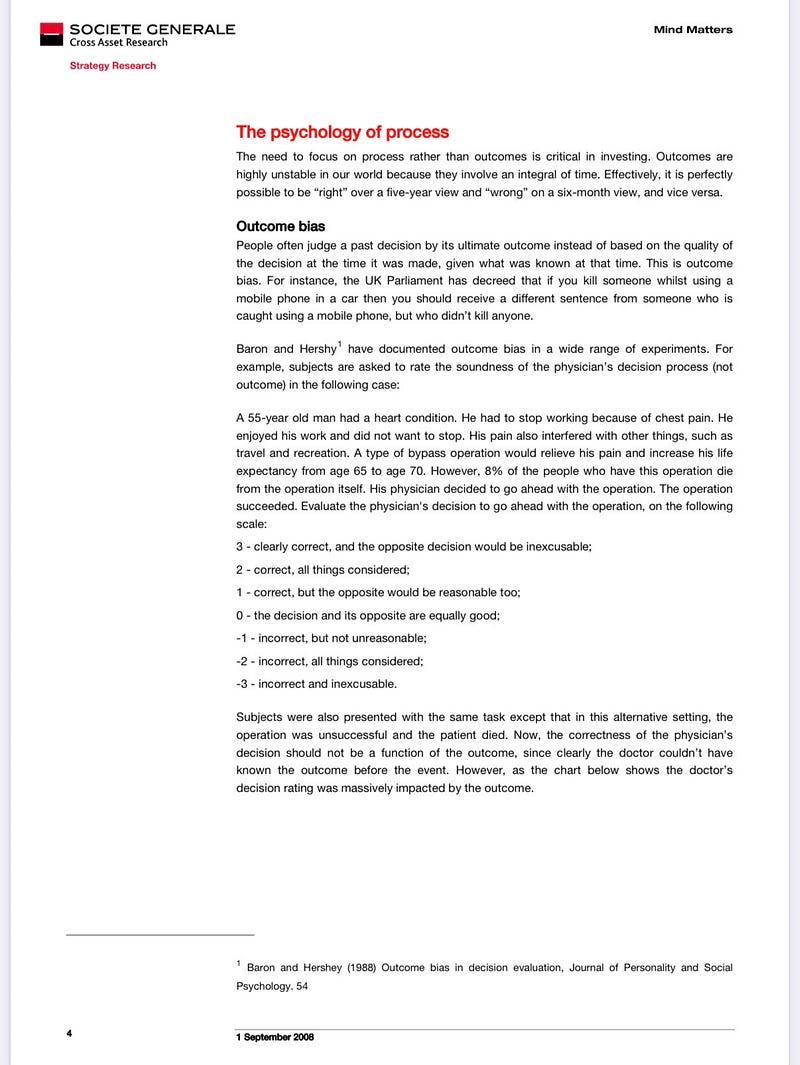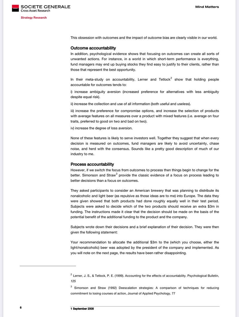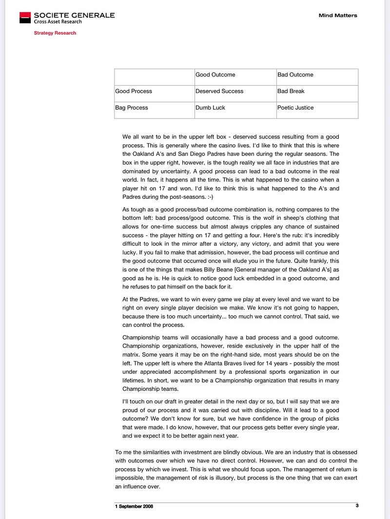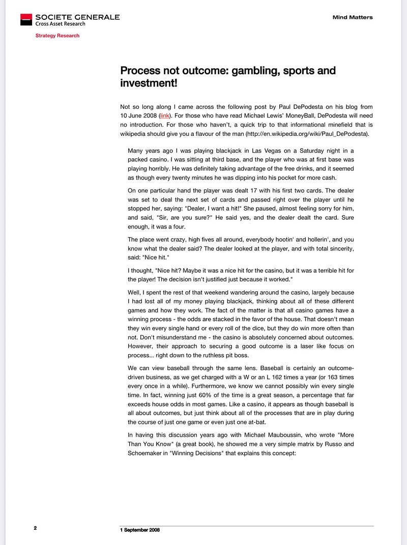 Process not outcomes: gambling, sport and investment.
