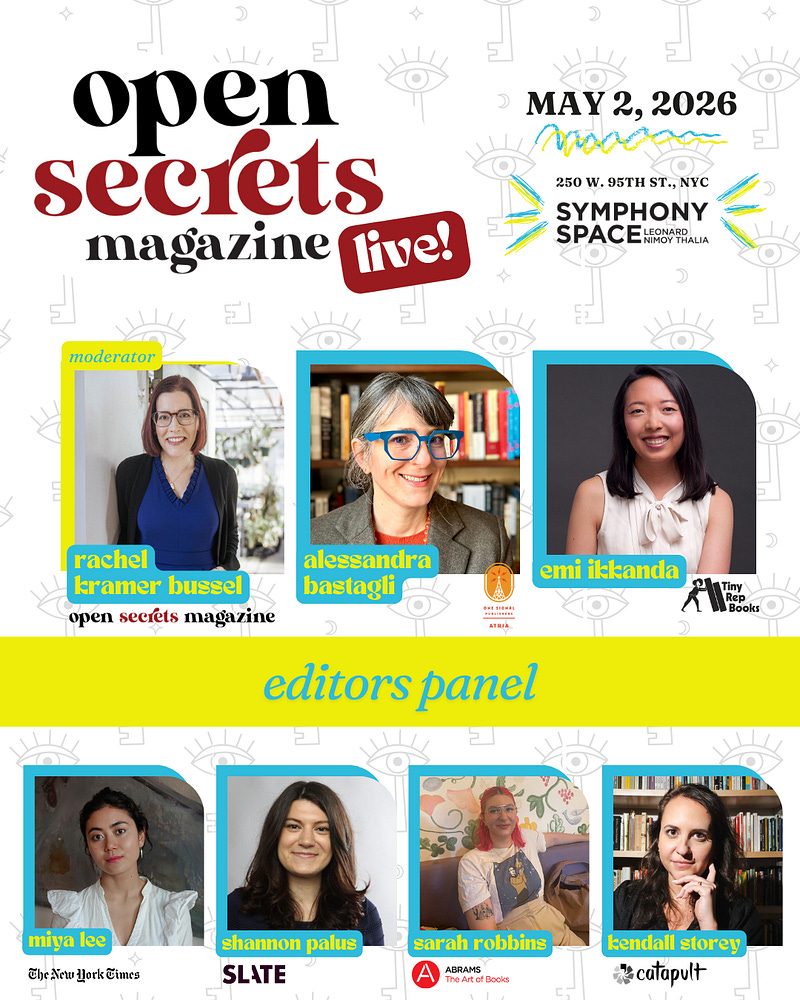 Want publishing tips? Hear from editors at The New York Times’ Modern Love and Tiny Love Stories sections, Slate, and book publishers Abrams, Catapult, One Signal (Atria imprint), and Tiny Reparations Books (Dutton imprint), plus our editor-in-chief Rachel Kramer Bussel about what they’re looking for from writers and how to stand out, plus get the chance to ask questions. Join us LIVE in NYC on May 2!