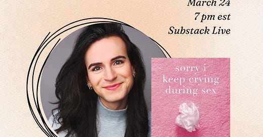 Who’s joining us next Tuesday, March 24, for our interview with Jesse James Rose, author of our March Open Secrets Book Club pick, memoir sorry i keep crying during sex? Now’s the perfect time to mark your calendar and start reading if you haven’t read it yet!