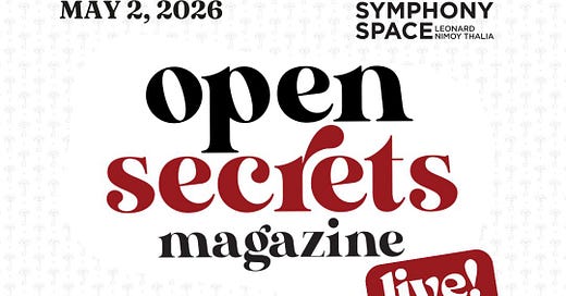If you want to know what it’s all about, check out our action-packed schedule and lineup of 43 speakers including over 30 memoir authors. More info here, and subscribe to Open Secrets to get our original essays in your inbox and audio from the May 2 panels and talks sent to you too.
