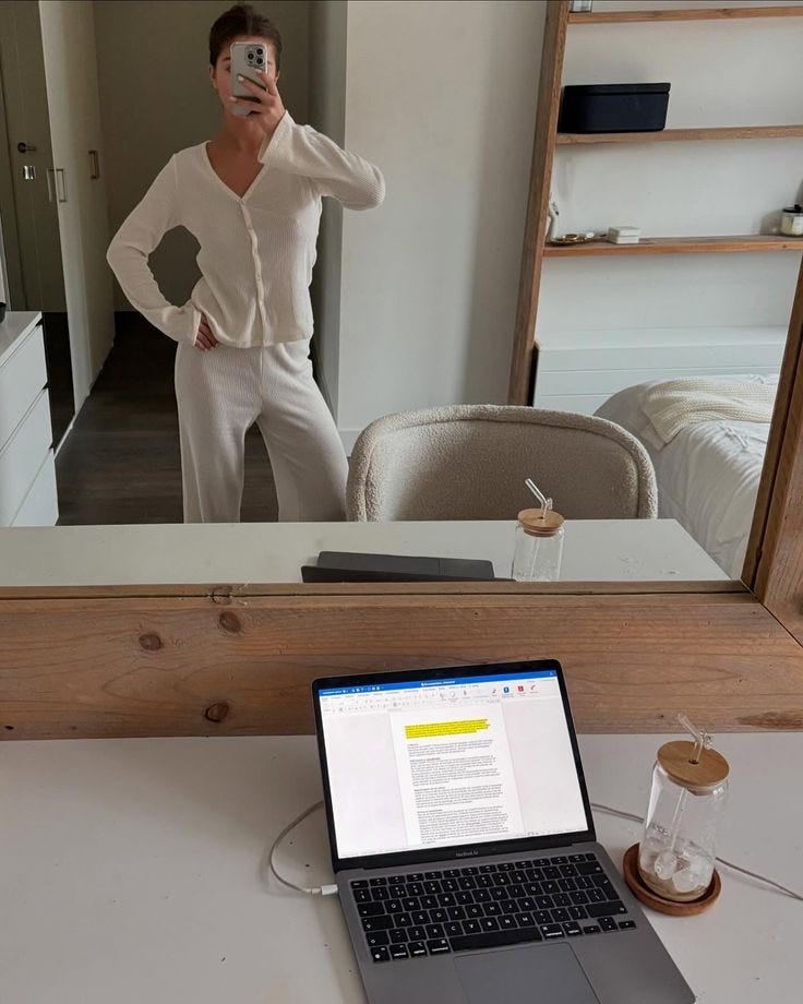 thursday, relaxing day, cute matching pj set, oat milk lattes, pilates, organizing room, healthy eating and cooking different recipes ✨