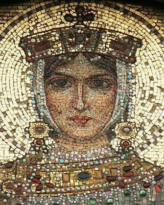 El mosaico de la emperatriz Teodora es una de las obras más célebres del arte bizantino. Esposa de Justinian I, Teodora ejerció una influencia política directa en el Imperio bizantino y participó activamente en decisiones de gobierno, algo excepcional para una mujer de su tiempo.