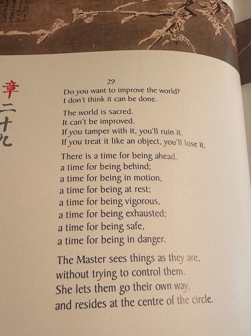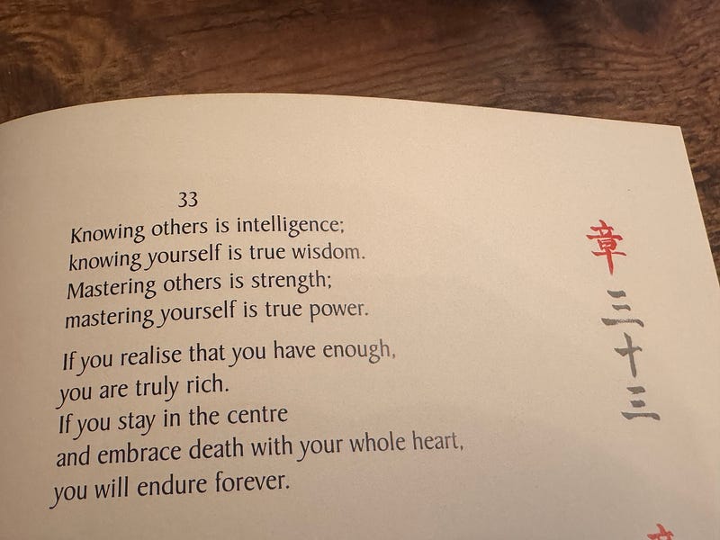 My step son sent a gift. I lost my original Tao Te Ching when we moved. His gift is a beautiful version. If there was ever a theme for 2026, it was the first page I opened.