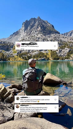 I wasn’t saying men don’t have a right to hike. What I’m saying is other people have a right to feel safe doing it too.
