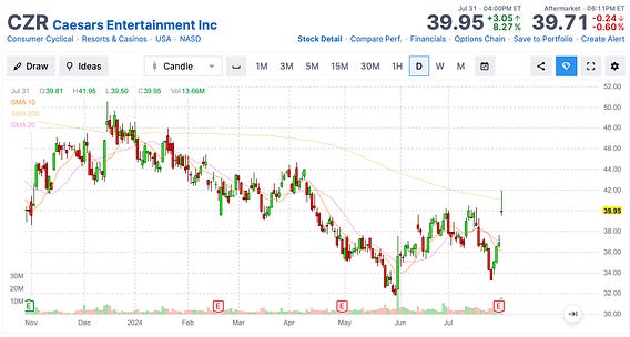 Solid Q2 for Caesars $CZR, which we recommended in March.
