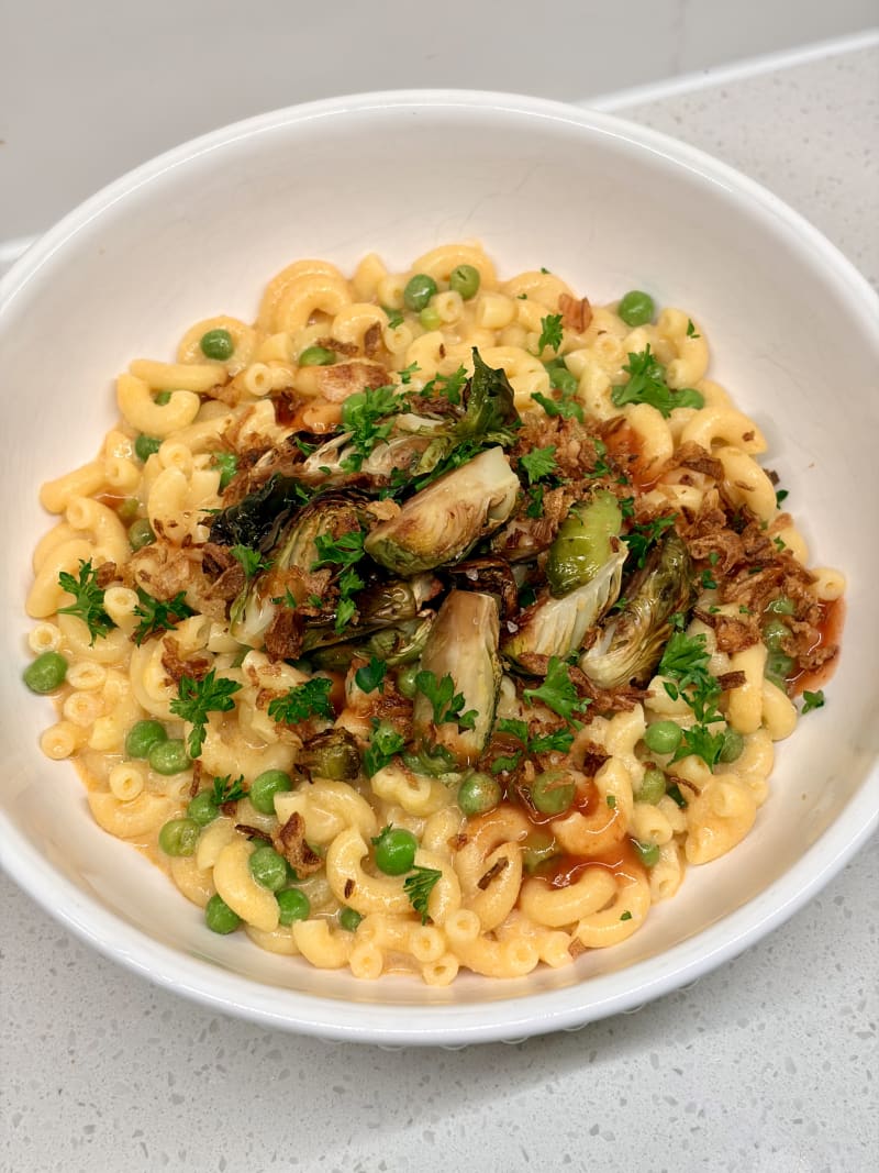 buffalo mac & cheese with crispy b sprouts aka most popular dish on every microbrewery menu in 2015 🙂↕️