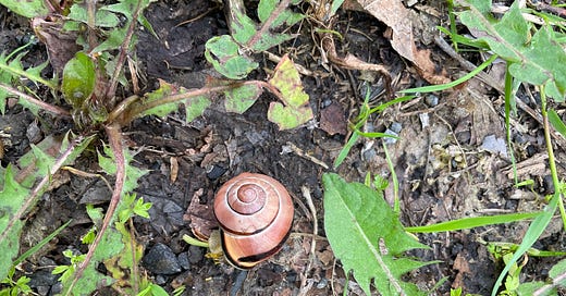 Maybe that’s part of what I love about snails—that they make embodiment so visible. They move at the pace of process. They carry their shelter with them. They leave evidence of having passed through. Nothing about them feels interested in transcendence. They are devoted to contact, moisture, appetite, survival—qualities that feel, in their own way, related to the emotional center of this poem.