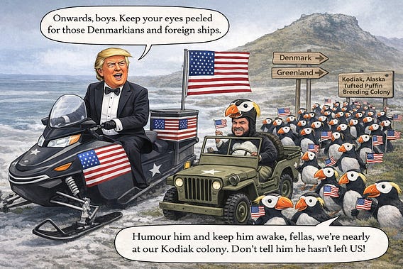 But the easiest approach may be to send Trump on a mission to Greenland and corral him in a puffin colony in Alaska!🐧😂