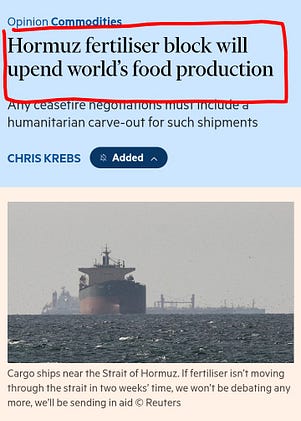Ask yourself: what are the odds that, in the very same month the Strait of Hormuz is shut down—cutting off critical fertilizer exports—Australia’s largest fertilizer producer suddenly has an “incident” that forces it offline for months?