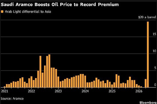For the first time in history, Saudi Arabia is charging a $20 per barrel premium over the already sky-high benchmark for its oil.