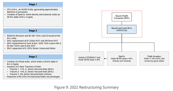 The company responded with a three-phase restructuring: the Bausch + Lomb IPO, a secured debt raise, and a creative dropdown of its crown jewel assets. Each step bought time, but also escalated creditor fights.