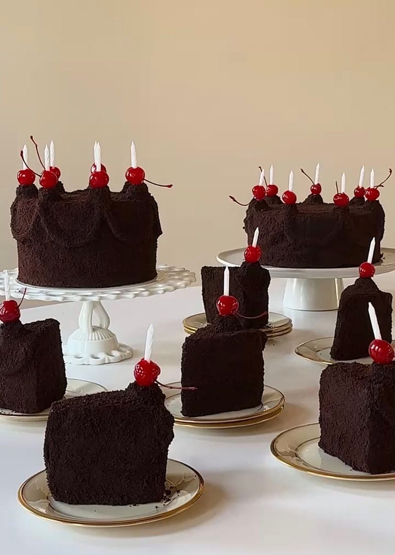 This years birthday cake recipe is a vanilla sponge roulade w. fruit whip + birthday cakes from the last two years: Brooklyn blackout and pistachio raspberry chiffon. All recipes are on my Substack!
