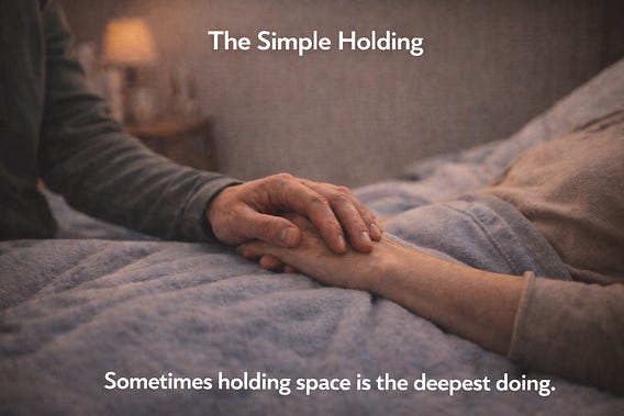 We often believe we must do something active to help. Simple holding—being with, without fixing—creates the safest container for healing, for truth, for becoming.