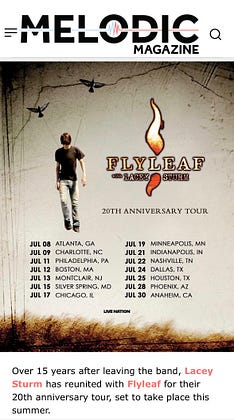 Over 15 years after leaving the band, Lacey Sturm has reunited with Flyleaf for their 20th anniversary tour, set to take place this summer. The month-long tour kicks off on July 8 in Atlanta, GA. The run will make stops in major cities across the US, including Philadelphia, Boston, Chicago, Minneapo…