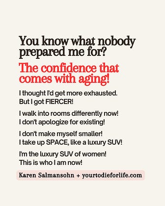 You know what nobody prepared me for? The CONFIDENCE that comes with aging!