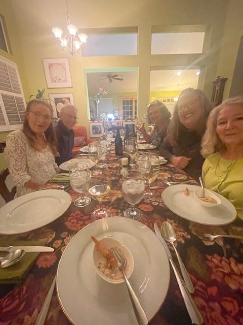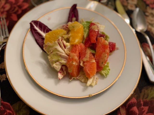 Hi there! Jim and I want to thank you for your inspiration that lives on in our world. We host an annual Cioppino dinner at our house and this year we wanted tell everyone about our recent trip to Charleston and our lunch with you. We had your books for our friends to look at while we told them about our lunch and, coincidentally, your recent post about red grits. We had decided to serve a small sampling of shrimp & grits in homage to southern food. Everyone loved the red grits and were won over by them, even if not liking grits previously. Here’s a few pictures of our dinner: the shrimp & grits appetizer, a castelfrano citrus salad (in my opinion, the most beautiful lettuce) and our Cioppino! We hope you are doing well, read your posts religiously, and think of you often. Deb PS: everyone loved your books, the culture, recipes and especially the photography!