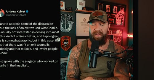 The magical 30-06 round that acts like a small caliber round. Kirk did not have Superman's neck. That is fantasy land speak from Andrew Kolvet.