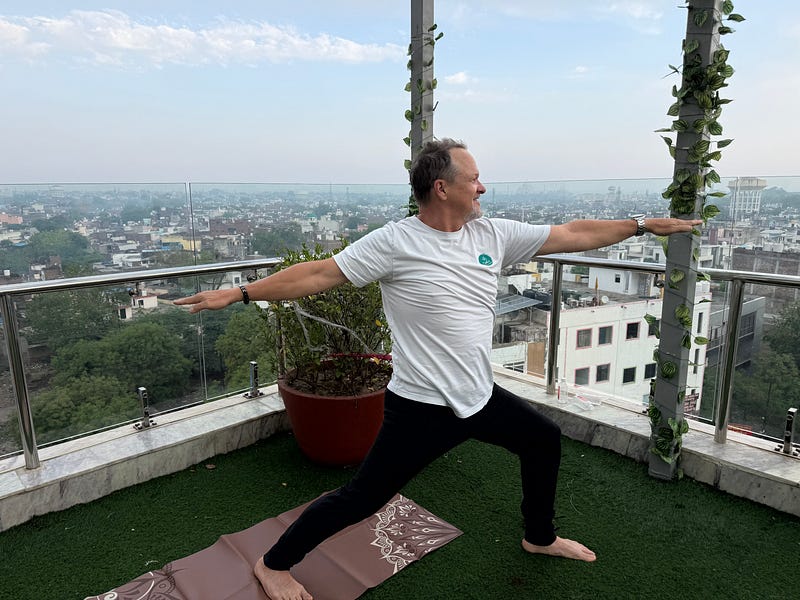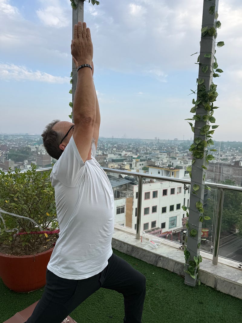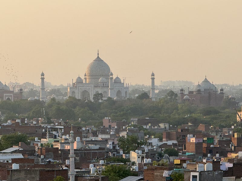 Yoga is possibly one of the best tonics for long distance travel and while the Taj is behind my left arm in the warrior pose, we had cloud cover today. But believe me when I say doing yoga from the roof top of our hotel at dawn was incredible. The sun shone and the Taj popped for a minute or so, just as we came out of shivasana. Magic moment.